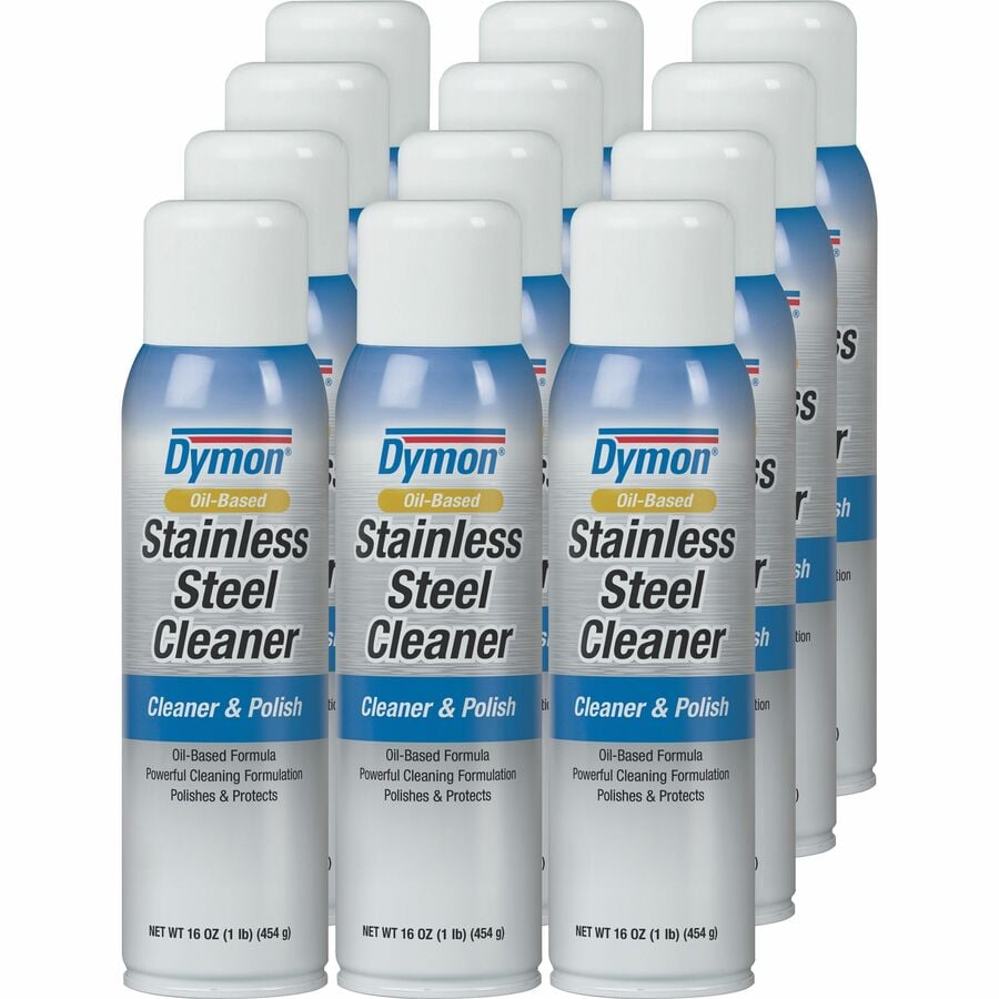 Dymon Oil-based Stainless Steel Cleaner – Aerosol – 16 fl oz (0.5 quart) – Neutral Scent – 12 / Carton – White