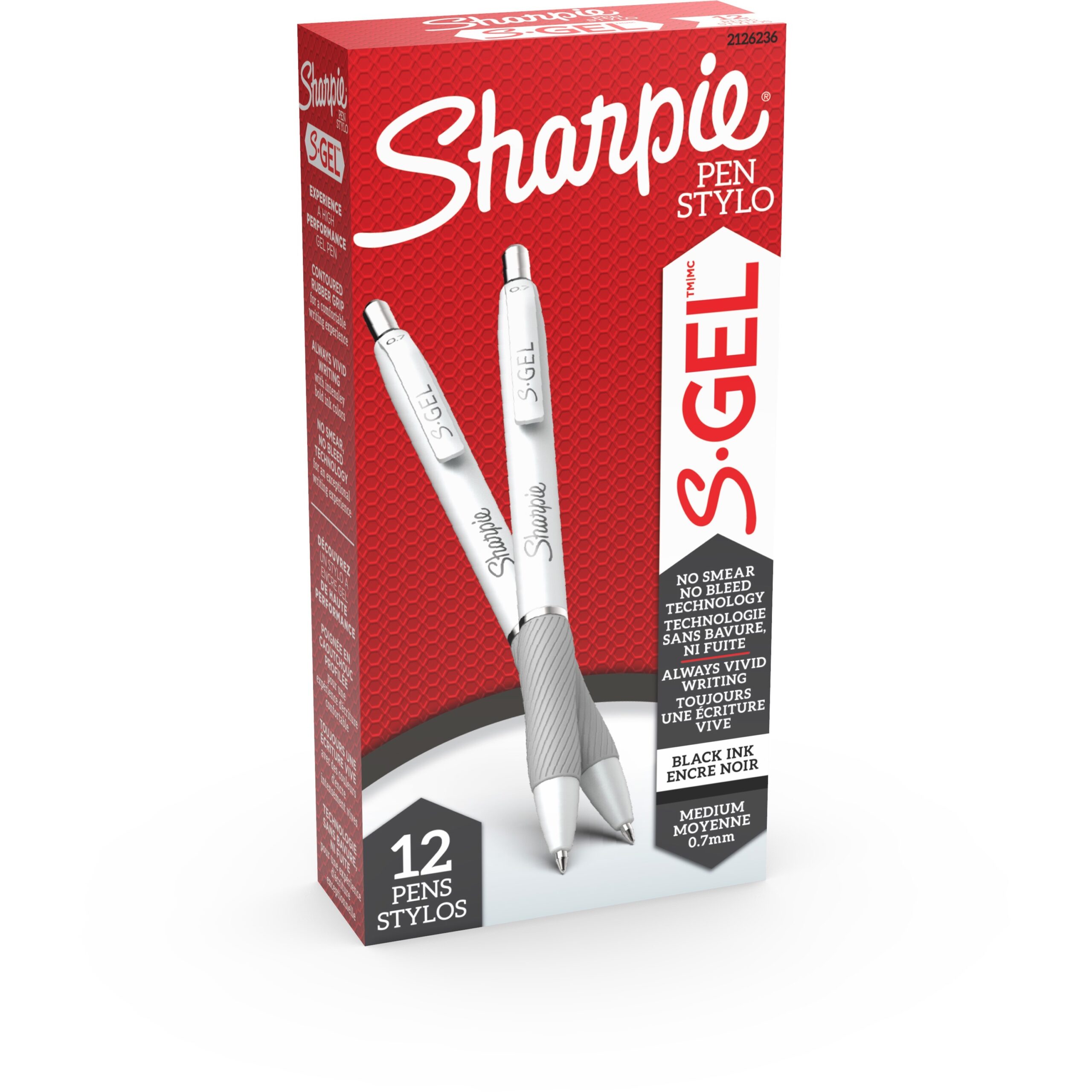 Sharpie S-Gel Pen – Medium Pen Point – 0.7 mm Pen Point Size – Black Gel-based Ink – White Barrel – 1 Dozen