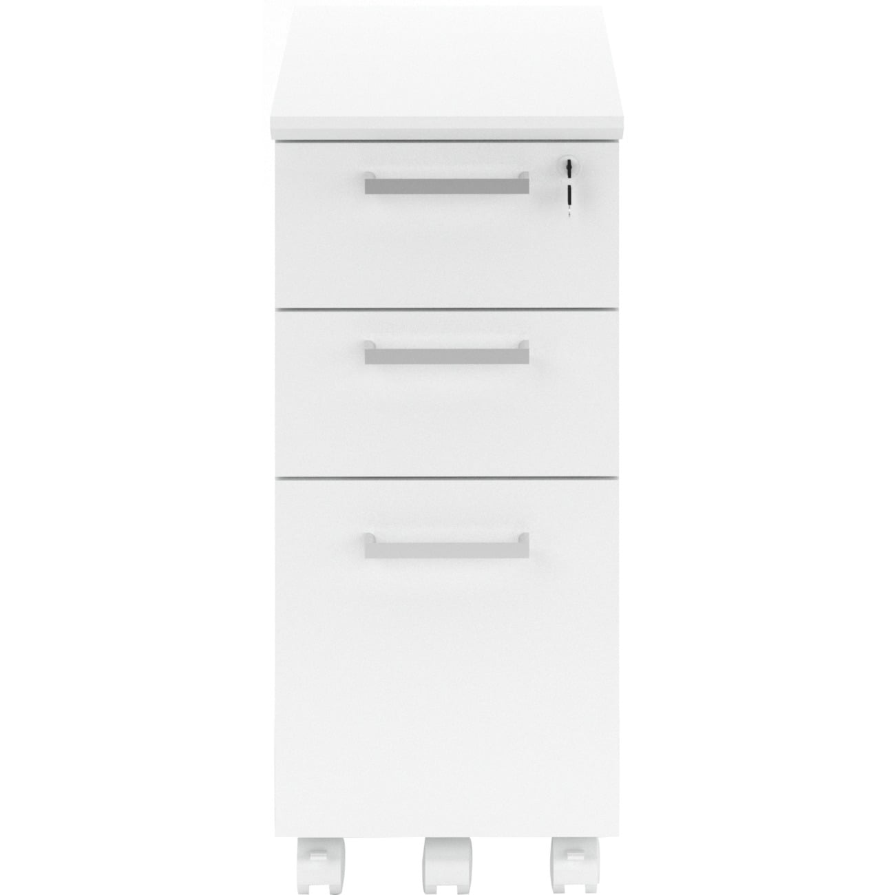 | Marketing Information | <p>Store important files and work tools close at hand with this mobile Resi Ped. White laminate exterior with knife-edge finish on the front offers a modern aesthetic that will elevate your space. Five, highly durable, white casters allow you to easily move the storage pedestal anywhere you like it. Then, simply lock the three front casters in place for safety once you're ready. Two lockable drawers and file cabinet offer plenty of space for storage and organization. Durable, steel drawer pulls feature a versatile satin finish.</p> |