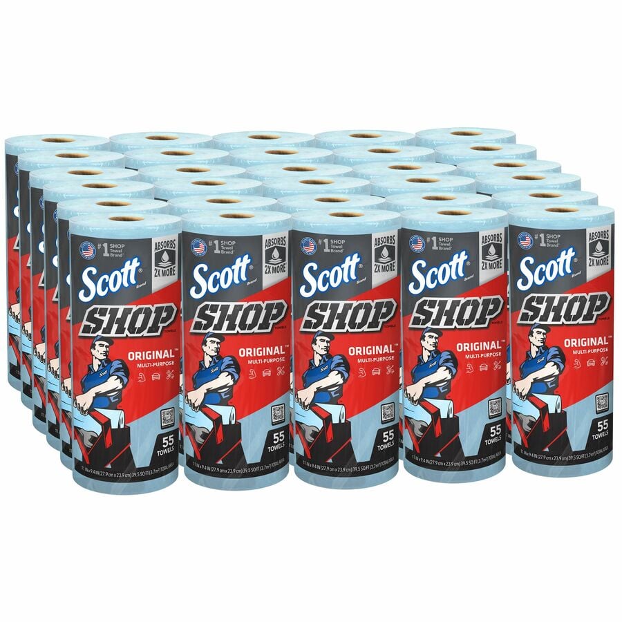 Scott Original Shop Towels – 1 Ply – 55 Sheets/Roll – Blue – Strong, Durable, Absorbent – For Garage, Automotive – 30 / Carton
