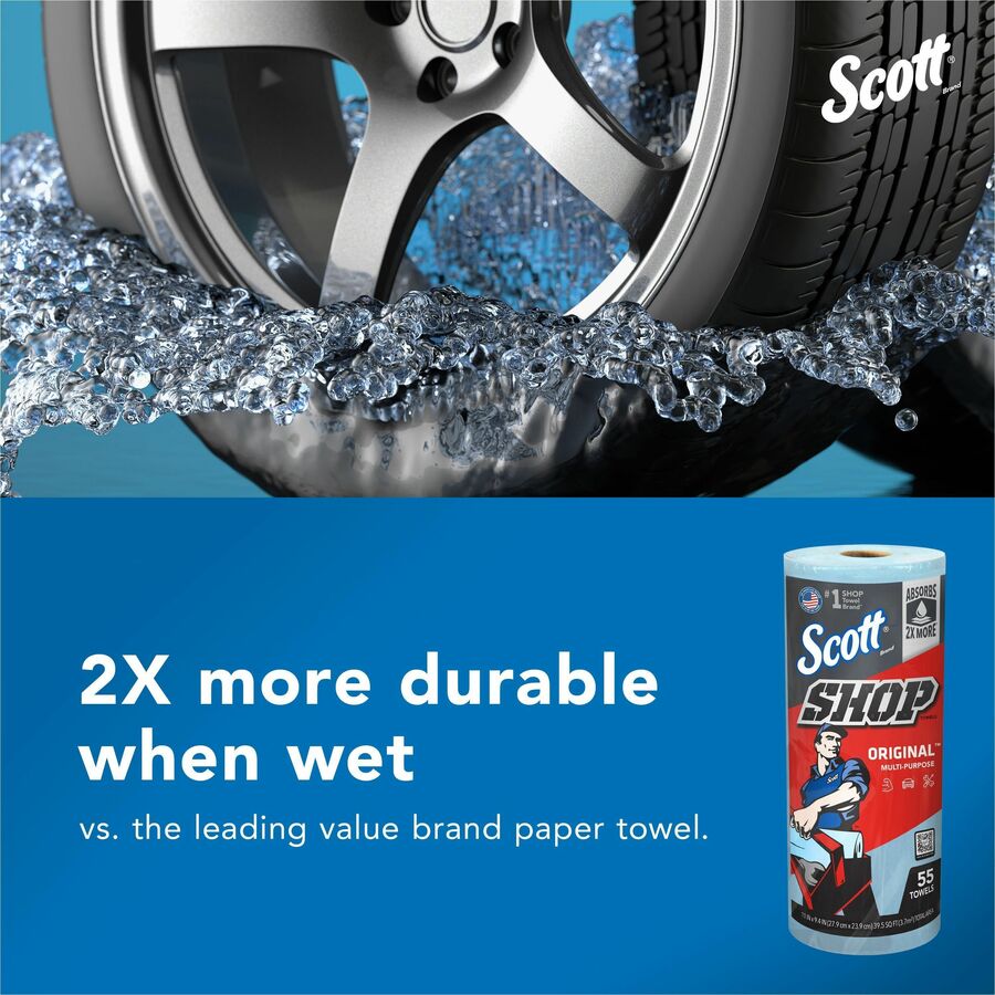 Scott Original Shop Towels – Fresh – 10.40″ x 11″ – 55 Sheets/Roll – Blue – Absorbent, Durable – For Multi Surface – 1 / Roll