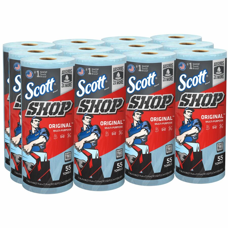 Scott Original Shop Towels – Fresh – 10.40″ x 11″ – 55 Sheets/Roll – Blue – Absorbent, Durable – For Multi Surface – 12 / Carton