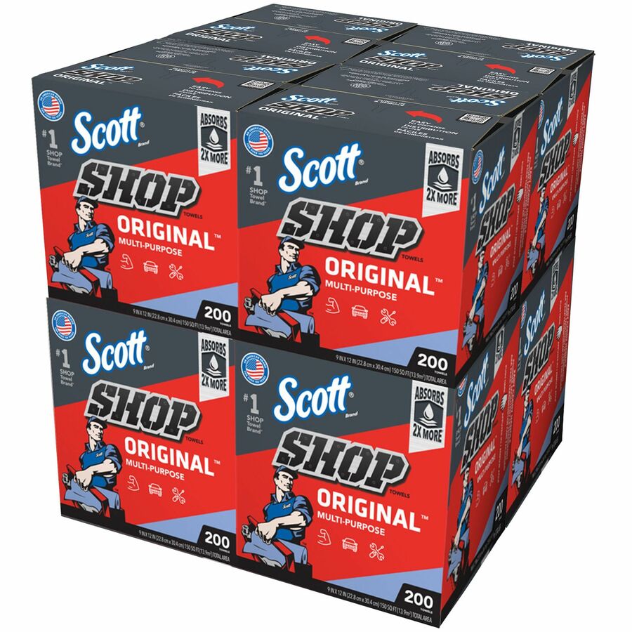 Scott Original Shop Towels – Towel – 9″ Width x 12″ Length – 200 / Box – 8 / Carton – Blue