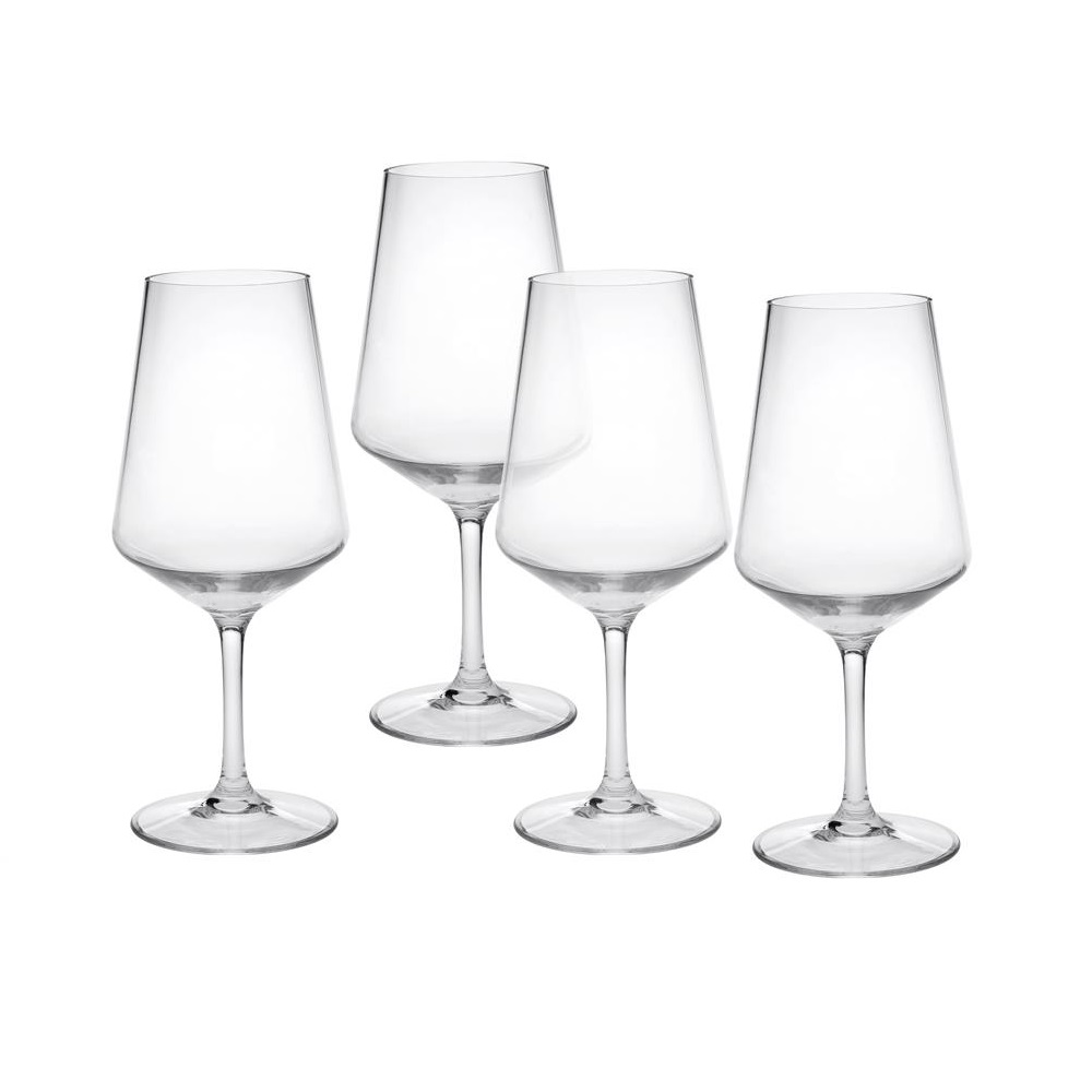 Set of Four Clear Tritan Plastic Stemmed All Purpose Wine Glass
