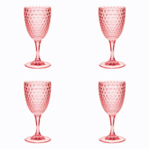 The set of four pink paisley acrylic stemless whiskey glass is a good-looking glass to use for your favorite whiskey but can also be used for most any other drink or beverage. Elevate any occasion with a set of stunning stemware that is as functional as it is beautiful. Whether you prefer a simple or complex flavor profile, stemless glasses offer the perfect vessel to savor every sip. Includes a decorative clear rim to enhance the look and elegance of the glass. The addition of a machine embossed design gives this glass special character and dimension. Imbibe in style with this good looking and eye-catching paisley design. The texture on this surface not only looks great but feels cool in your hand. Whatever your beverage preference, you are certain to enjoy the enhanced flavor and taste that comes with consuming from the proper vessel. 4.25-inch H x 3.38-inch W x 3.38-inch D