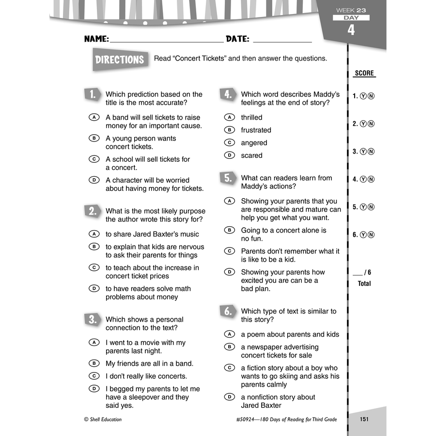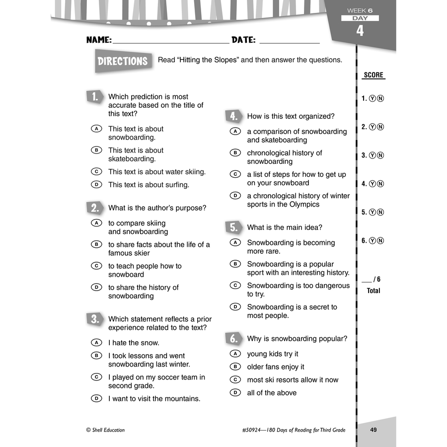 | Marketing Information | <p>Reading book set features literacy-focused readers and activity sheets to help young learners reinforce and develop key literacy skills. Daily practice sheets cover an array of topics and include activities that are aligned to national and state standards. The individual readers discuss literacy concepts in a fun way. Text features, such as bold print, captions, index and glossary, increase comprehension and language fluency. Book set includes Mammal Mania, Sweet: Inside a Bakery, Buy It! History of Money, and 180 Days of Reading for Third Grade.</p> |