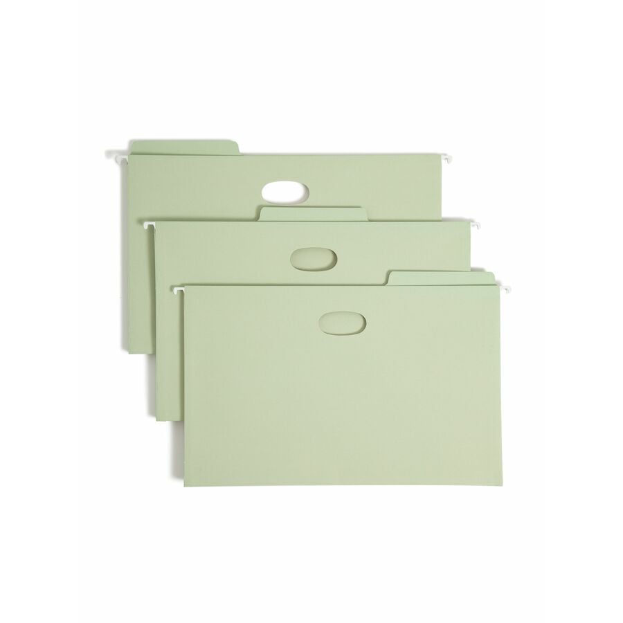Smead FasTab 1/3 Tab Cut Legal Recycled Hanging Folder – 8 1/2″ x 14″ – 3 1/2″ Expansion – Top Tab Location – Assorted Position Tab Position – Moss – 10% Recycled – 9 / Box