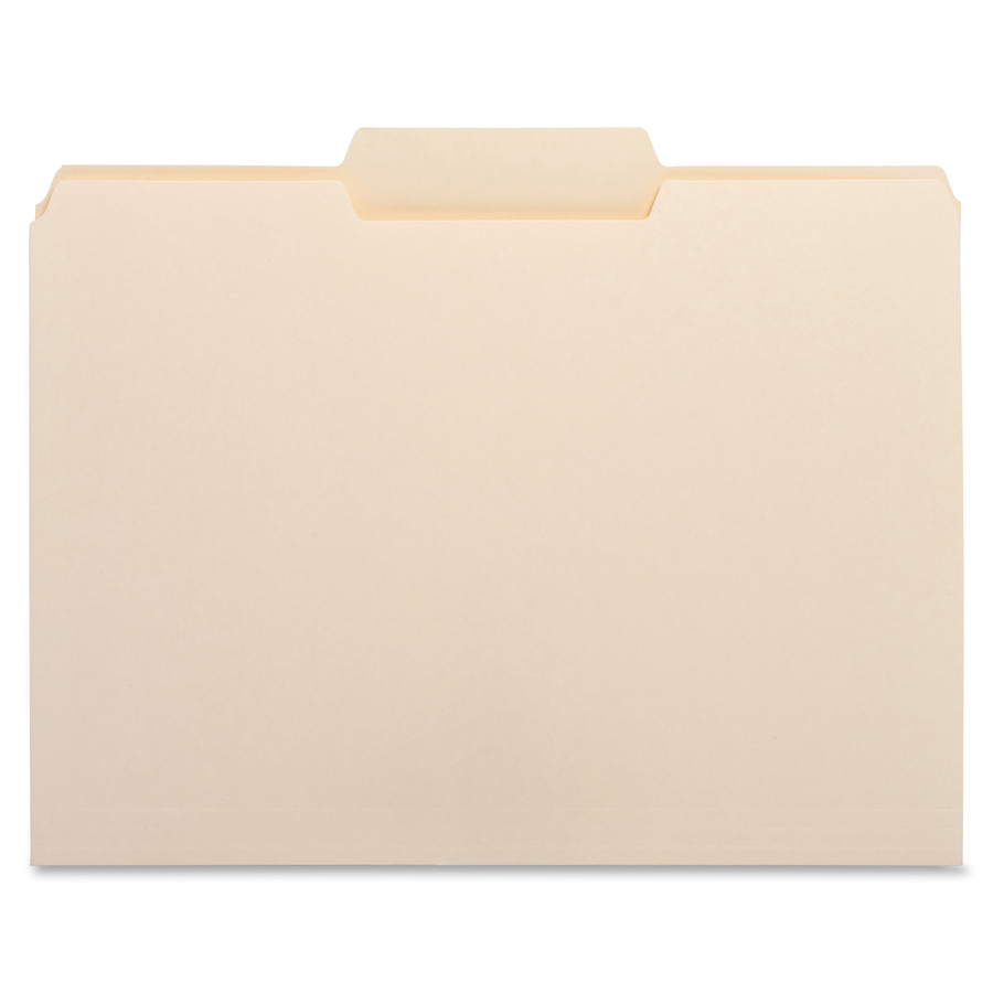 | Marketing Information | Find critical files fast with SuperTab file folders. Heavyweight folders deliver nearly double the labeling area of standard folders so you can use larger text or more lines of description on your label. Oversized, 1/3-cut tabs in assorted positions actually provide a 90 percent larger label area. Each durable folder is made of 14 point, colorful stock to withstand heavy use and is scored for 3/4" expansion. Speed filing and retrieval time by using color to categorize different types of folders. SuperTab Heavyweight Folders fit any vertical or lateral filing system. <p><a id="gfk-spex-minisite" rel="nofollow" href="javascript:void(0)" onclick="javascript:window.open('//content.etilize.com/mini-site/en_us/1023555966.html', '_blank', 'height=800, width=780, resizable=yes, scrollbars=yes, toolbar=no, menubar=no, location=no, directories=no, status=no'), return false, ">More from the Manufacturer</a></p> |