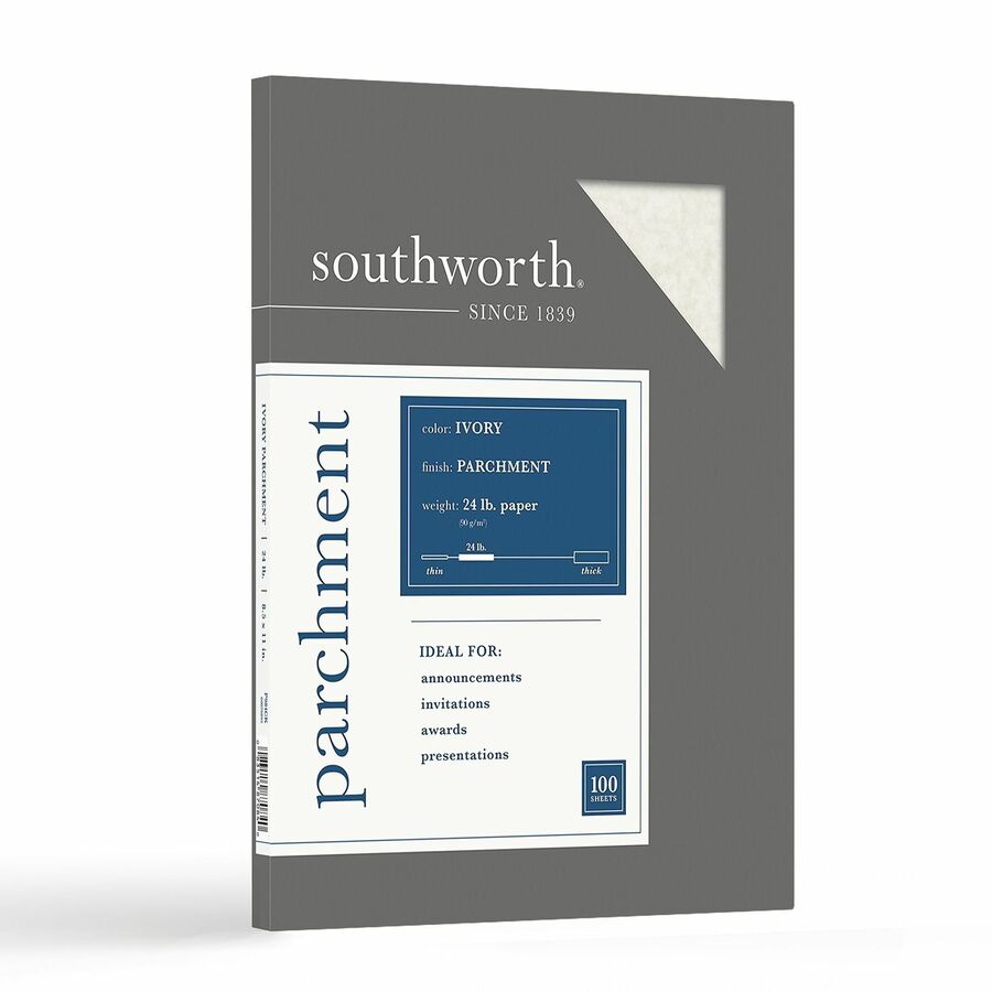 Southworth 100% Cotton Resume Paper – Letter – 8 1/2″ x 11″ – 32 lb Basis Weight – Linen – 100 / Box – Acid-free, Watermarked