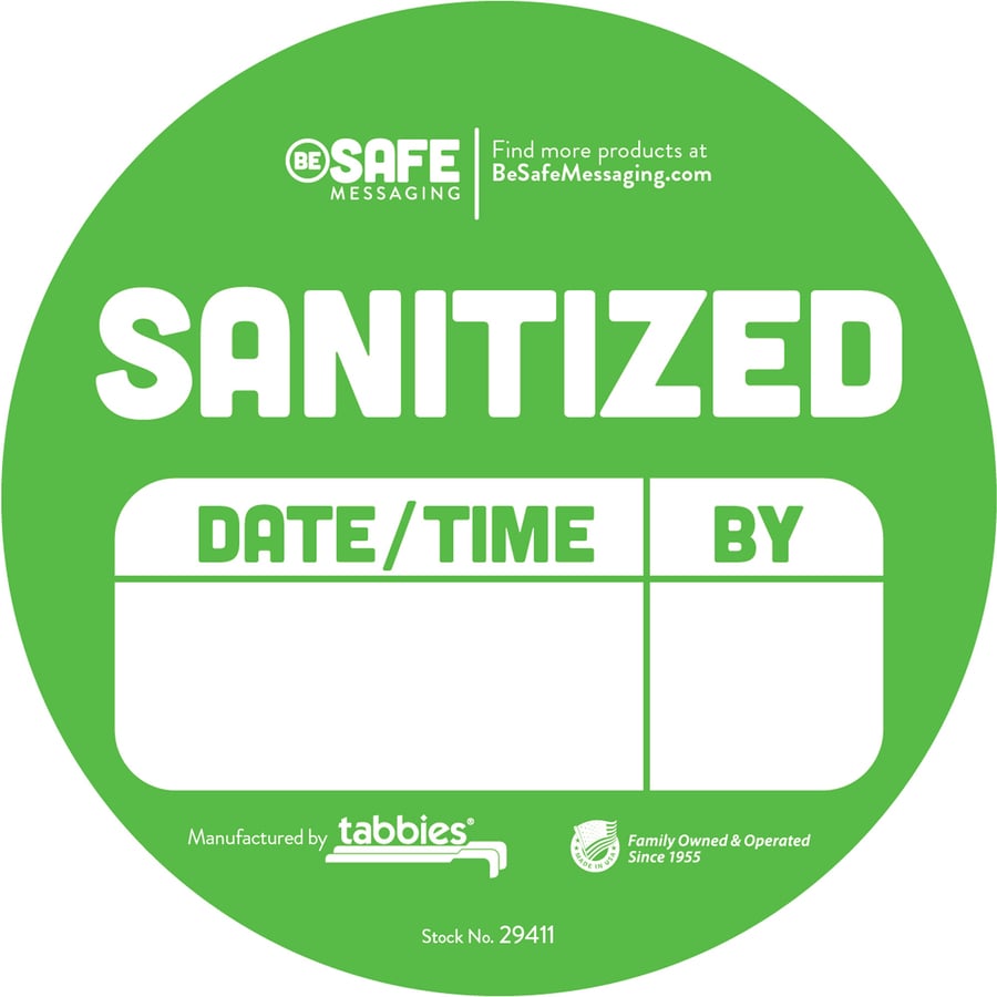 Tabbies Multi-Surface Sanitization Labels – Removable Adhesive – Circle – Green – 100 / Roll