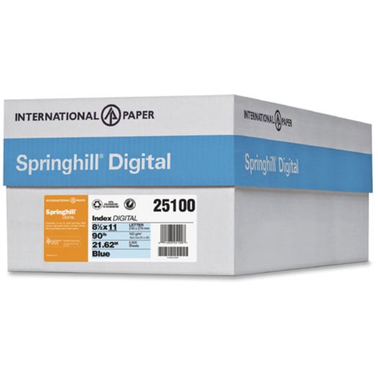 Springhill Multipurpose Cardstock – Blue – 92 Brightness – Letter – 8 1/2″ x 11″ – 90 lb Basis Weight – Smooth, Hard – 250 / Pack – Acid-free