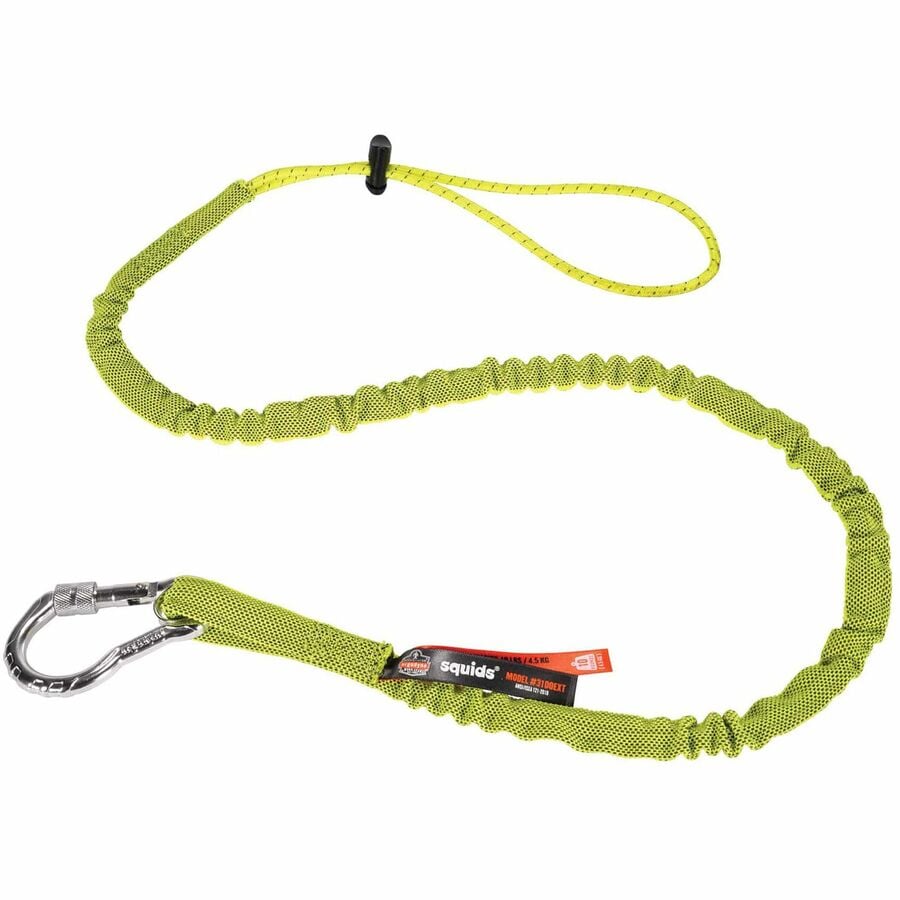 | Marketing Information | Tether your hand tools to this 3003 Retractable Tool Lanyard with Carabiners to avoid potential snagging hazards. Auto-locking carabiner carries your tools. Attach tethering carabiner to your tool belt, D-ring or other anchor points. Lanyard tethers tools weighing up to 0.5 lb. (0.23 kg.) while retracted and 2 lb. (0.9 kg.) tools without retracting to prevent falling objects while at heights. Cord is made of high-strength, lightweight, cut-resistant Dyneema to withstand harshest conditions. Retractable, swiveling carabiner end reduces tangles by rotating tools. Fiberglass-reinforced, durable housing is textured for gripping. Housing also protects internal components while the tapered cord exit limits concrete and other debris from entering. Retractable cord reaches up to 48" (122 cm). Lanyard is tested and approved to ANSI/ISEA 121 standard for tool safety while at heights to prevent dropped objects. |