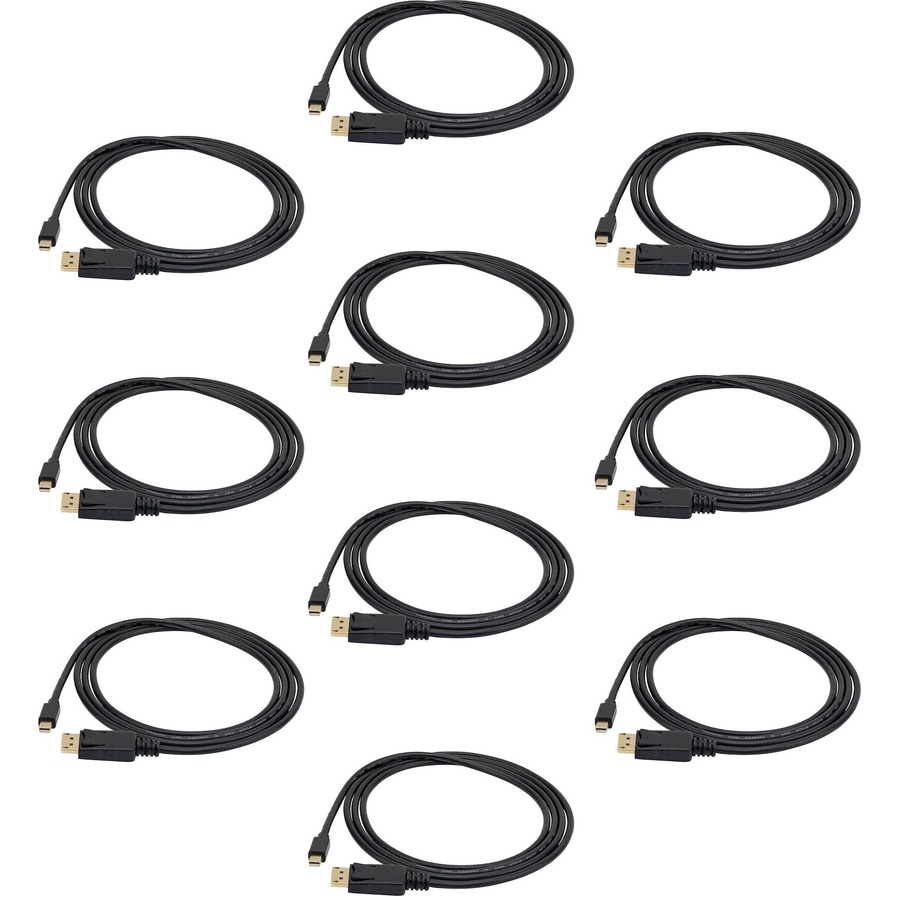 The 10 pack 6ft Mini DisplayPort™ to DisplayPort Adapter Cable, features a Mini DP male connector on one end, and a DP male connector on the other, allowing you to connect any Mini DisplayPort-equipped laptop (including the Mac® family of products) to an HDTV, monitor or projector that uses a standard DisplayPort connection.