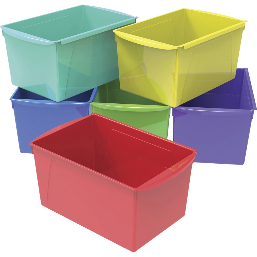 | Marketing Information | <p>Book bins feature a versatile design that can be used on 15" deep shelves and desktops, or turned sideways to fit into narrow 12" shelves and bookcases. They fit scrapbook paper, letter-size files and folders, and large magazines. Integrated carry handles allow you to easily transport your supplies from room to room.</p> |