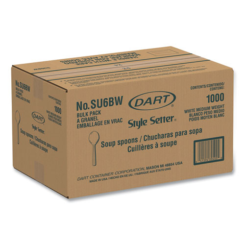Style Setter Mediumweight Plastic Utensils, Soup Spoon, White, 1,000/Carton
