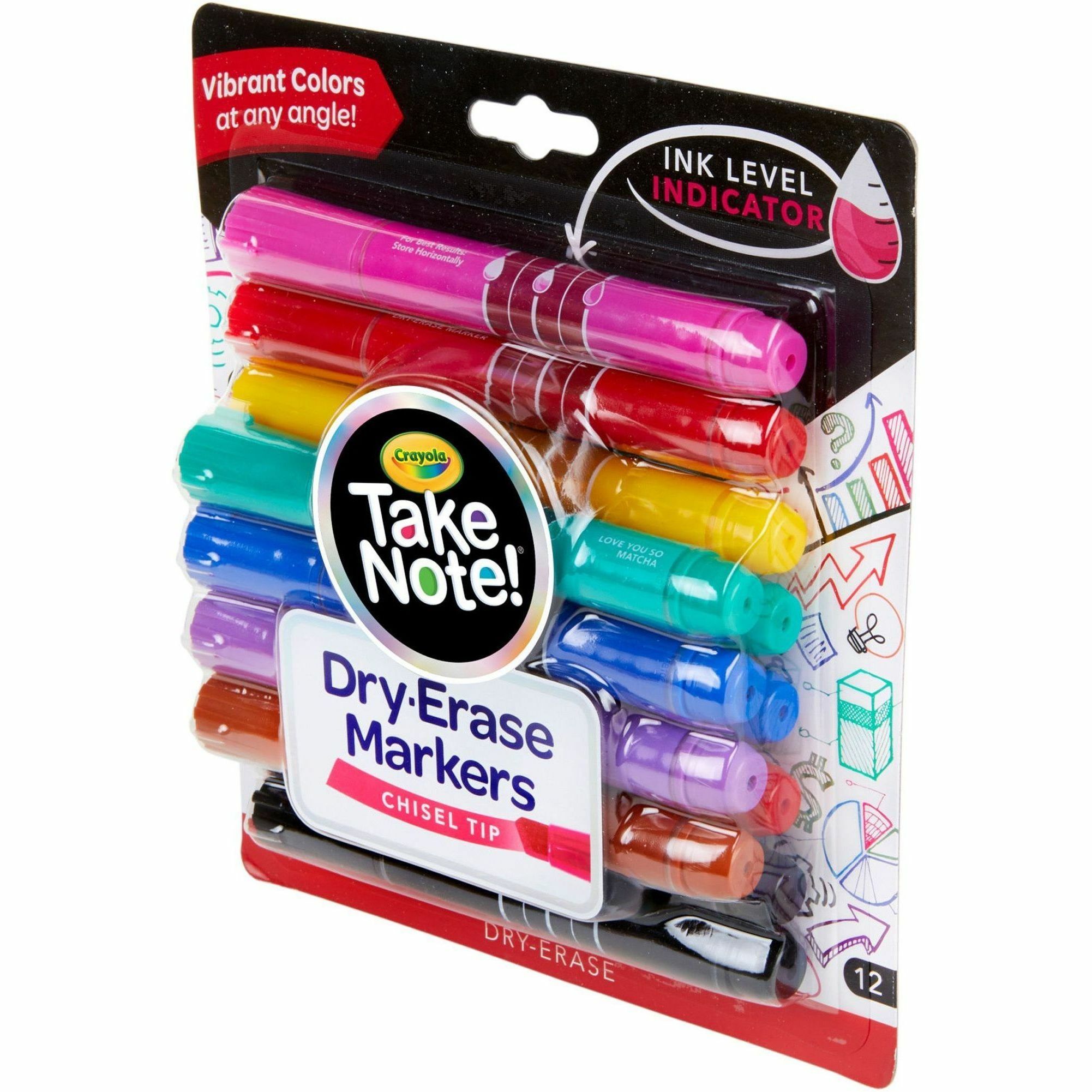 Take Note! Dry Erase Markers – Chisel Marker Point Style – Assorted – 12 / Pack