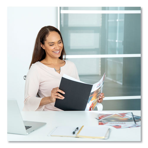 Presentation covers for thermal binding systems. Transparent front cover highlights title page. Elegant back cover in glossy white or linen-textured black. Compatible with most thermal binding systems.
