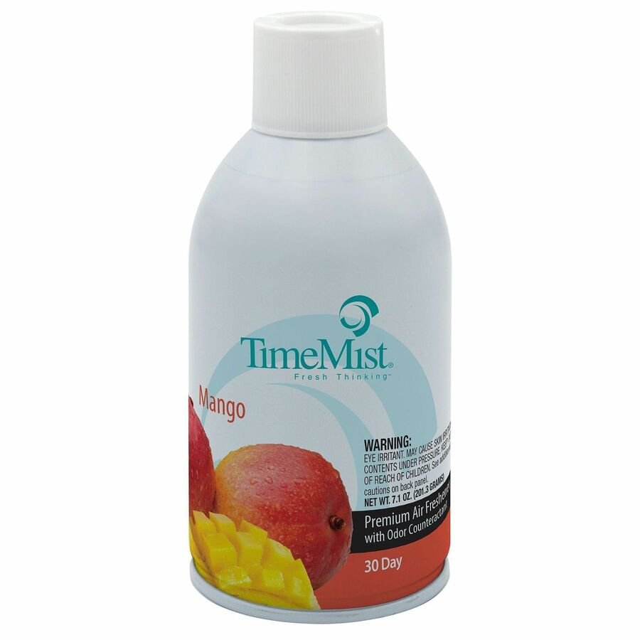 | Marketing Information | <p>Elevate your customer or visitor experience with this innovative, Premium Metered 30-Day Air Freshener – Mango. Perfect for your odor control program, fragrance and odor counteractants in one can neutralize stubborn odors swiftly and provide lasting aromatherapy from the high-quality fragrance made with essential oils. Dual actuator system creates small micron dispersion, eliminating fallout. High fragrance load percentage ensures longest-lasting experience. Imagine the flavor of golden mangos, sun-ripened to the point of juicy perfection so you can feel the cool refreshment encompass your senses. Dual odor counteractants target specific malodor-causing particles. Use this refill in TimeMist full-sized, metered fragrance dispensers (not included) for 30 days of continuous use when set at 15-minute intervals.</p> |