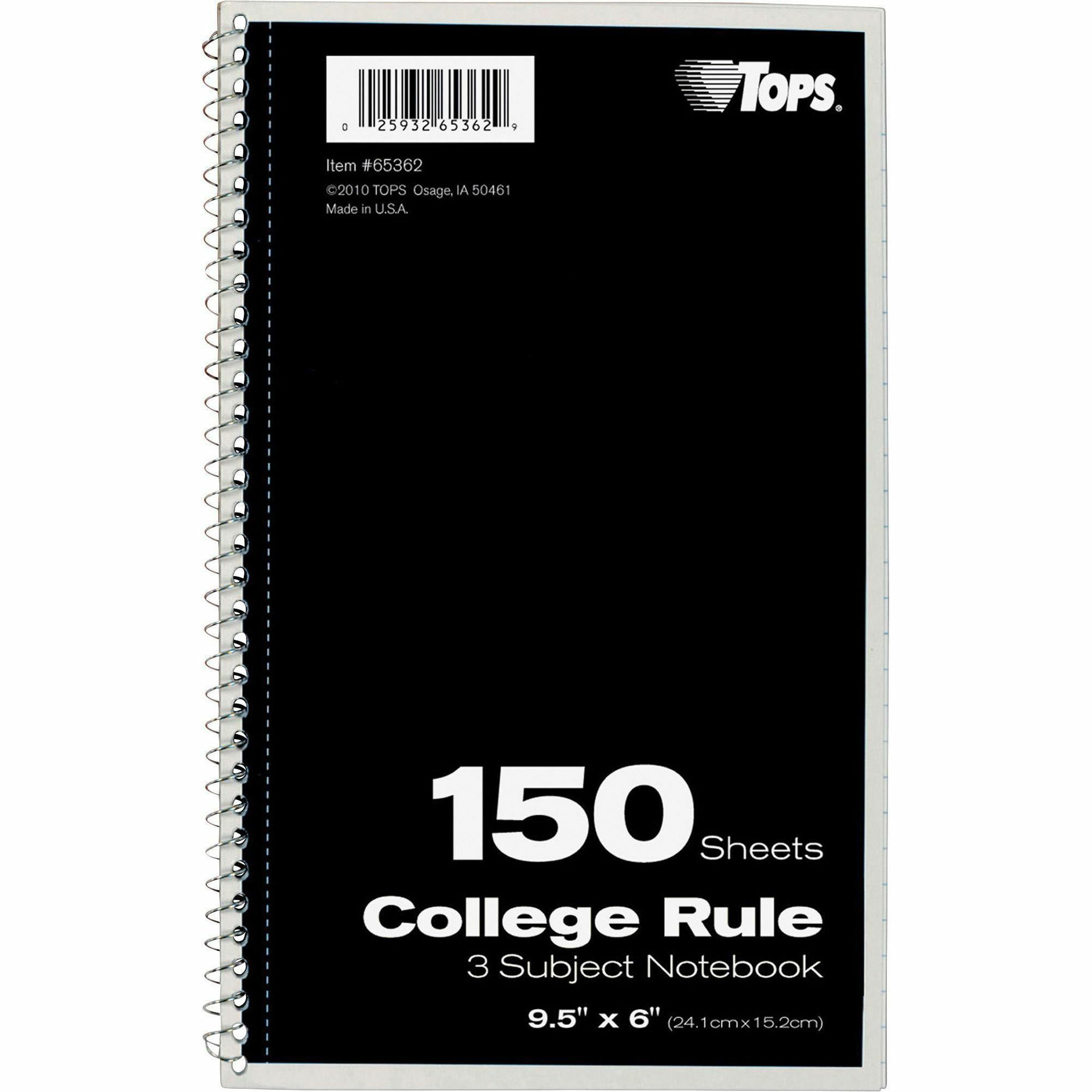 TOPS 3-subject College Ruled Notebook – 150 Sheets – Wire Bound – 9 1/2″ x 6″ – 13″ x 7.5″ x 9.8″ – Bright White Paper – Black, Red, Blue, Green, Purple Cover – Divider, Perforated – 1 Each