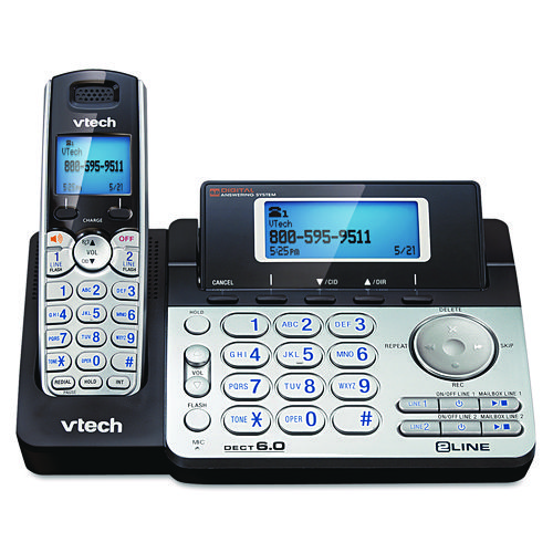Expandable phone system lets you add handsets where you need them. Two-line operation is ideal for busy homes or small offices. Integrated answering system features voicemail boxes for each line. Handset and base speakerphone provide hands-free options.