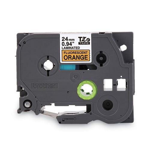 TZ Standard Adhesive Laminated Labeling Tape, 1″ x 16.4 ft, Black on Fluorescent Orange