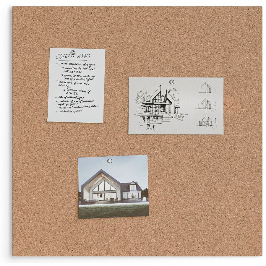 | Marketing Information | <p>This modern frameless corkboard is a perfect and functional solution to pin your notes and messages in any office, home or commercial environment. Use any pushpins, thumb tacks or map pins to pin all of your notes, messages, pictures, memos, calendars, menus, reminders and more. Due to the dense backing material under the board's cork surface, your pushpins are firmly gripped and stay in place without falling out. Natural self-healing cork surface hides pushpin holes once the pushpins are taken out. This bulletin board has a universal mounting system so it can be hung vertically or horizontally to fit your allocated space. Mounting hardware and instructions are included for quick and easy mounting. Board is packaged with extra-supportive corrugate material that is highly resistant to damage during shipping. All corrugated material can be recycled once unpacked.</p> |
