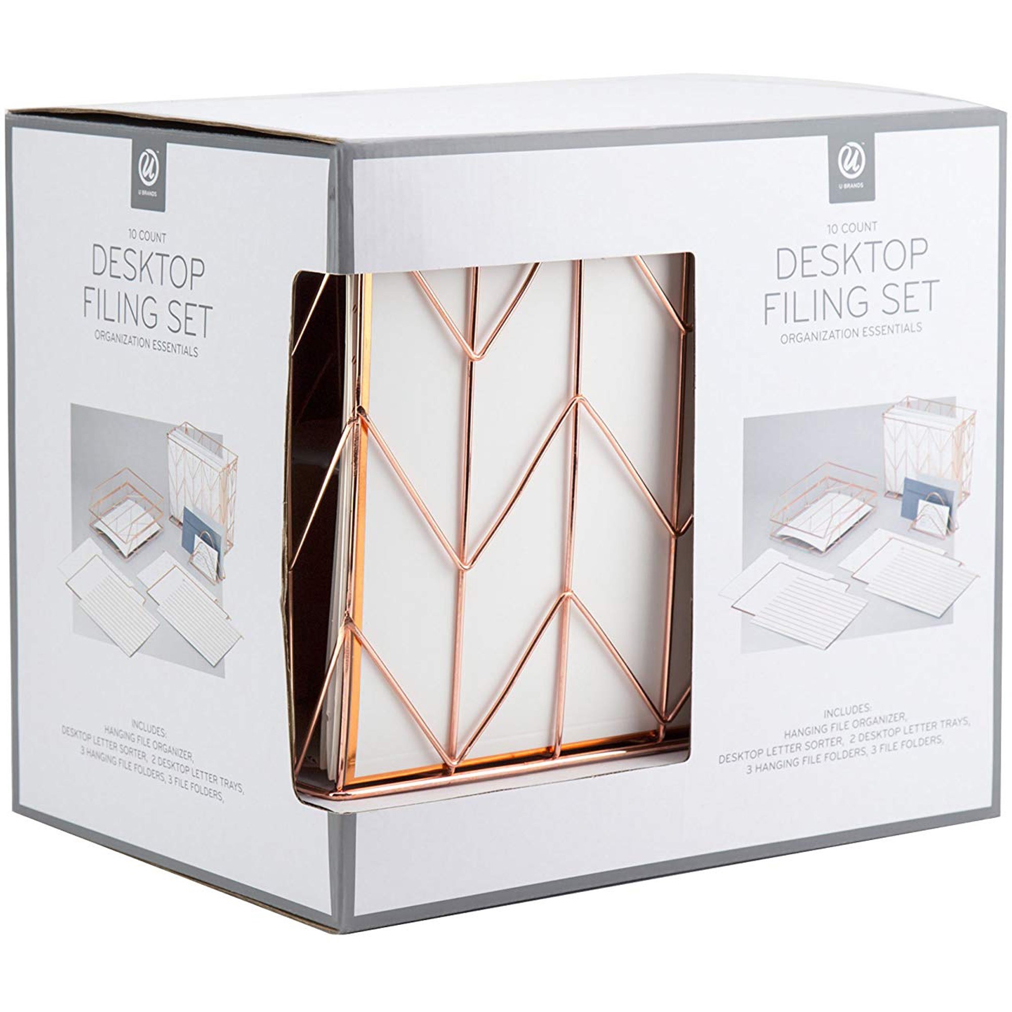 | Marketing Information | <p>Desktop Organizer and Filing Set adds a modern touch to your work space. Hanging file basket can be placed on top of your desk or secured to a wall using mounting brackets (not included). Letter sorter provides easy organization for letters, notes or memos. Durable folders ensure lasting organization for on-the-go projects. Set includes a hanging file basket, letter sorter, two letter trays, three hanging file folders and three file folders.</p> |