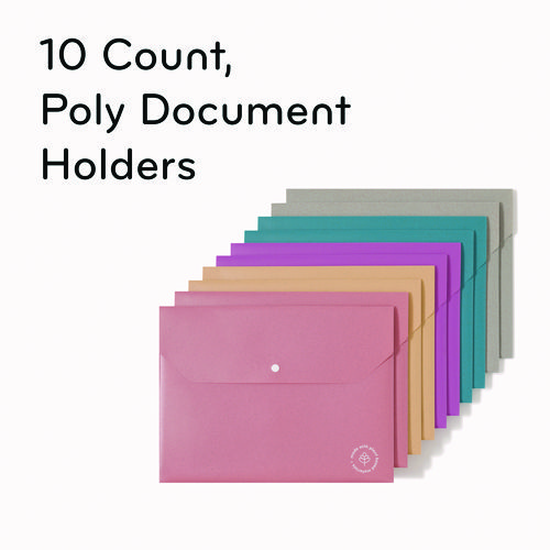 Introducing The U Brands® U-Eco Poly Document Holders, the perfect solution for protecting and organizing your important documents. Made from durable poly wheat straw material that is tear- and water-resistant, acid-free and PVC-free, these document holders are designed to withstand everyday use. The single pocket, letter-sized design is perfect for holding important papers, reports and more. The set includes five unique colors for easy color-coding, and the contents are secured by a protective flap and recycled snap button closure. Packaged in recycled drop-shippable packaging.