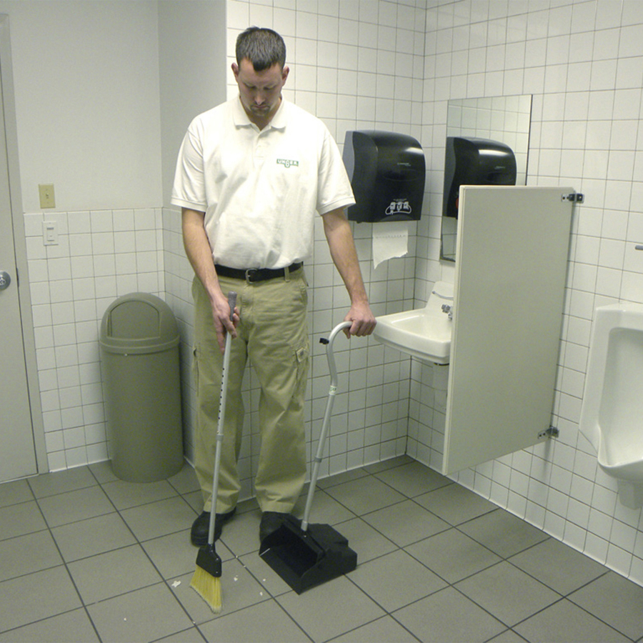 | Marketing Information | <p>Ergo Dustpan with broom features a telescopic handle that can be raised up to 10" to accommodate worker's height to improves their health and safety while on the job. Ergonomic aluminum handle minimizes hand and wrist strain. Broom attaches to the plastic dustpan for easy storage and retrieval. Swivel dustpan opens when base hits the floor and collapses without spilling its contents for quick removal of debris without bending. It includes SmartColor Decal Kit for color-coding.</p> |