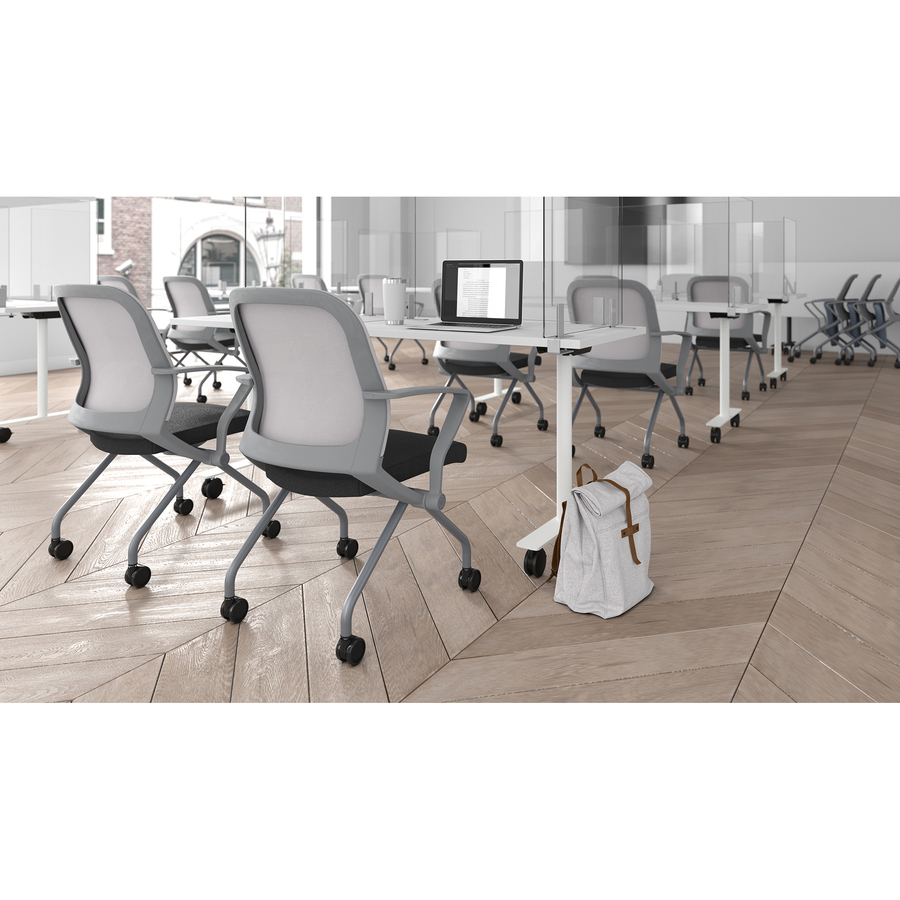 | Marketing Information | Versatile, stylish, Rackup Nesting Chair features a flexible backrest that tilts up to 22 degrees for instant relief. Seat folds for easy, compact storage. Breathable, mesh back increases airflow and circulation for all-day comfort. Padded seat provides soft, cushioned support. Relax in a comfortable position using fixed arms. Casters allow smooth mobility. |