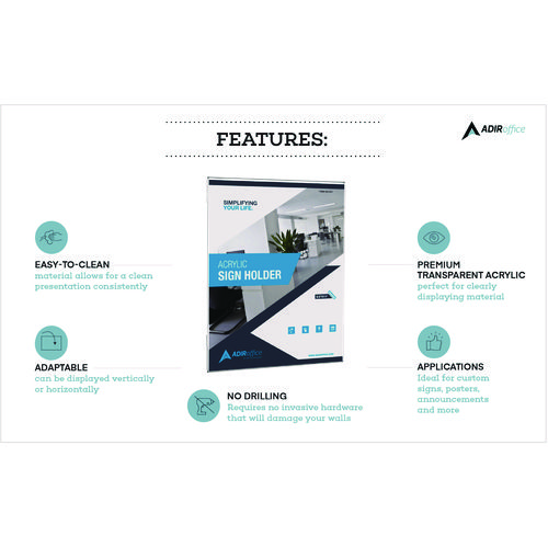 An excellent choice for mounting your signs against the wall. A common paper size, this sign holder is ideal for signage or literature that you want to exhibit in a professional manner. Displayed vertically or horizontally, it’s the perfect choice for holding signs, posters and announcements on any flat surface. Just insert the paper in the back between the top and bottom flaps to keep it secure and protected. Each flap features an extra strong adhesive that will prevent your signs from falling down. A wall-mounted sign holder is a reliable and noticeable announcement for everyone to see. This sign holder is made with high-quality acrylic material to provide long-term durability in addition to keeping your signs safe from stains, scratches and tears. Lightweight yet extremely durable, this shatter-resistant material won’t break even if it hits the ground. You need no other supplies as this set is complete with a flawless transparent acrylic design and ready-to-use mounting tape.Note: This is a non-returnable item.