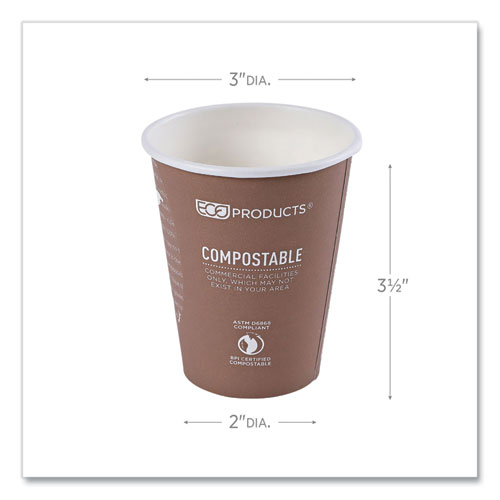 World Art Renewable and Compostable Hot Cups, 8 oz, Paper, Brown/White, 50/Pack