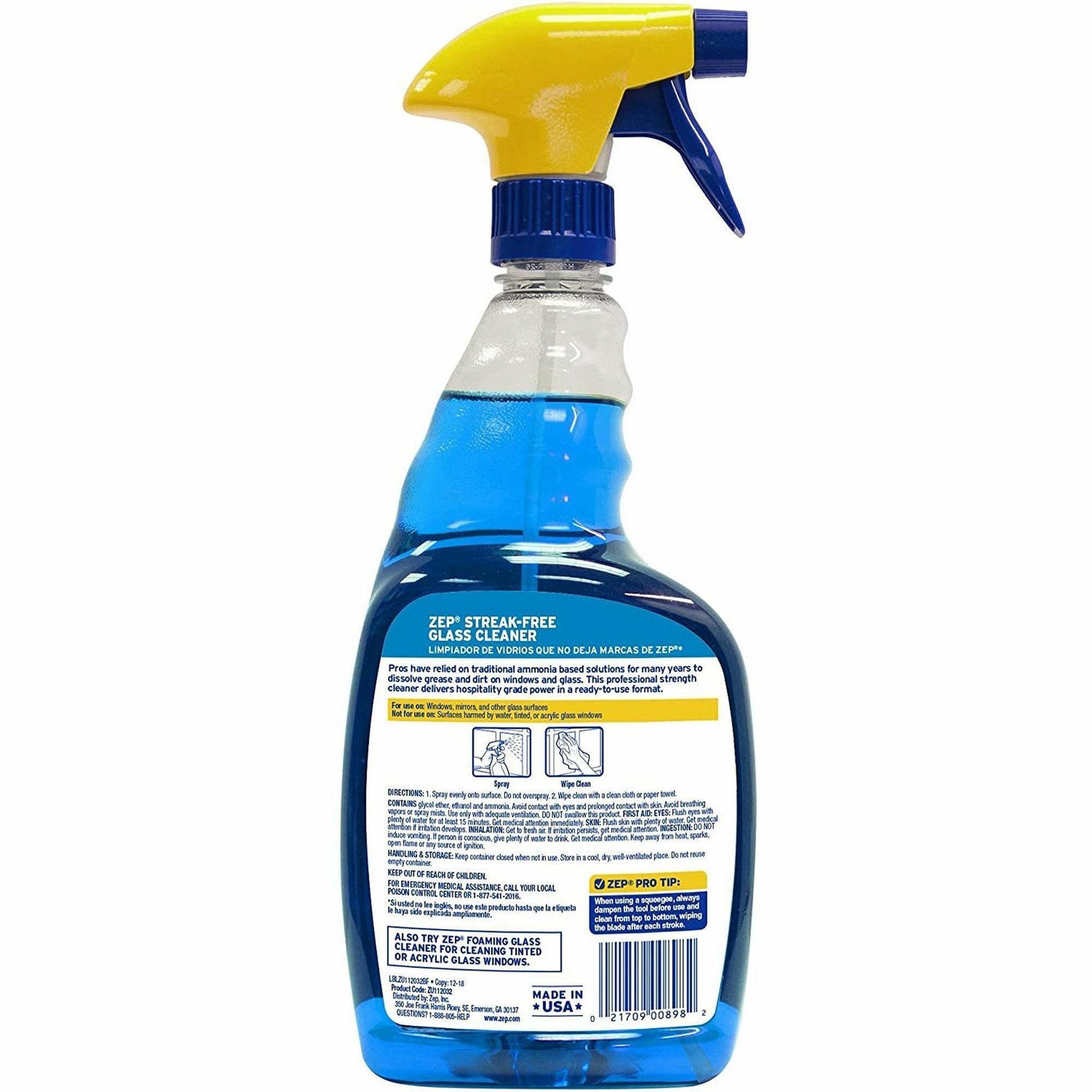 Zep Streak-Free Glass Cleaner – Spray – 32 fl oz (1 quart) – 1 Each – Blue