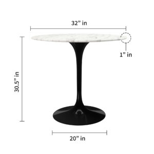 32″ White And Black Marble And Metal Dining Table