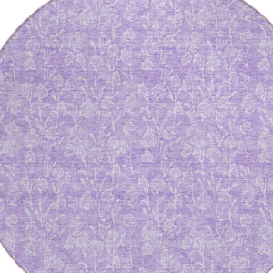 8′ Lilac And Ivory Round Floral Washable Indoor Outdoor Area Rug