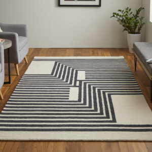 8′ X 10′ Gray Ivory And Black Wool Abstract Tufted Handmade Area Rug