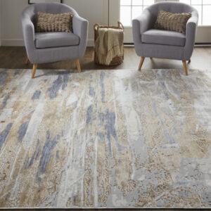 5′ X 8′ Tan Orange And Ivory Abstract Power Loom Distressed Area Rug
