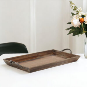 19″ Brown Wood Handmade Serving Tray With Handles