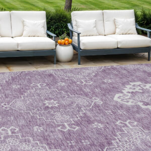 8′ X 10′ Lavender Plum And Ivory Medallion Washable Indoor Outdoor Area Rug