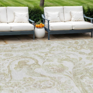9′ X 12′ Artichoke Green Ivory And Taupe Floral Washable Indoor Outdoor Area Rug