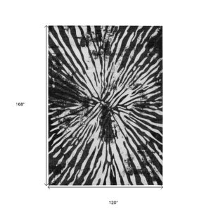 10′ X 14′ Black Charcoal And Ivory Abstract Washable Indoor Outdoor Area Rug
