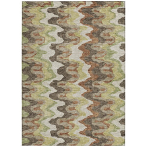 9′ X 12′ Chocolate Copper And Artichoke Green Abstract Washable Indoor Outdoor Area Rug