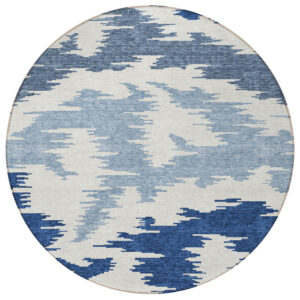 8′ Navy Blue And Denim Blue Round Abstract Washable Indoor Outdoor Area Rug