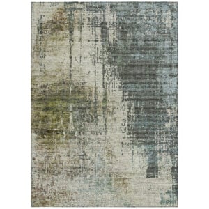 5′ X 8′ White Sky Blue And Artichoke Green Abstract Washable Indoor Outdoor Area Rug