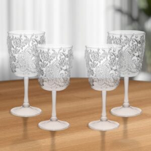 Set of Four Clear Paisley Acrylic Stemmed All Purpose Wine Glass