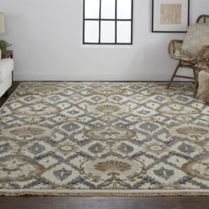 10′ X 13′ Ivory Gray And Taupe Wool Floral Hand Knotted Stain Resistant Area Rug