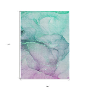 8′ X 10′ Green Abstract Washable Non Skid Indoor Outdoor Area Rug