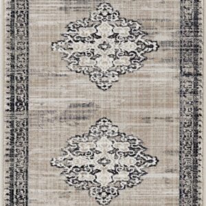 5′ X 8′ Sand Or Charcoal Medallion Bordered Area Rug