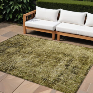 9′ X 12′ Green Abstract Washable Non Skid Indoor Outdoor Area Rug