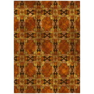 9′ X 12′ Orange and Rust Floral Medallion Washable Non Skid Indoor Outdoor Area Rug